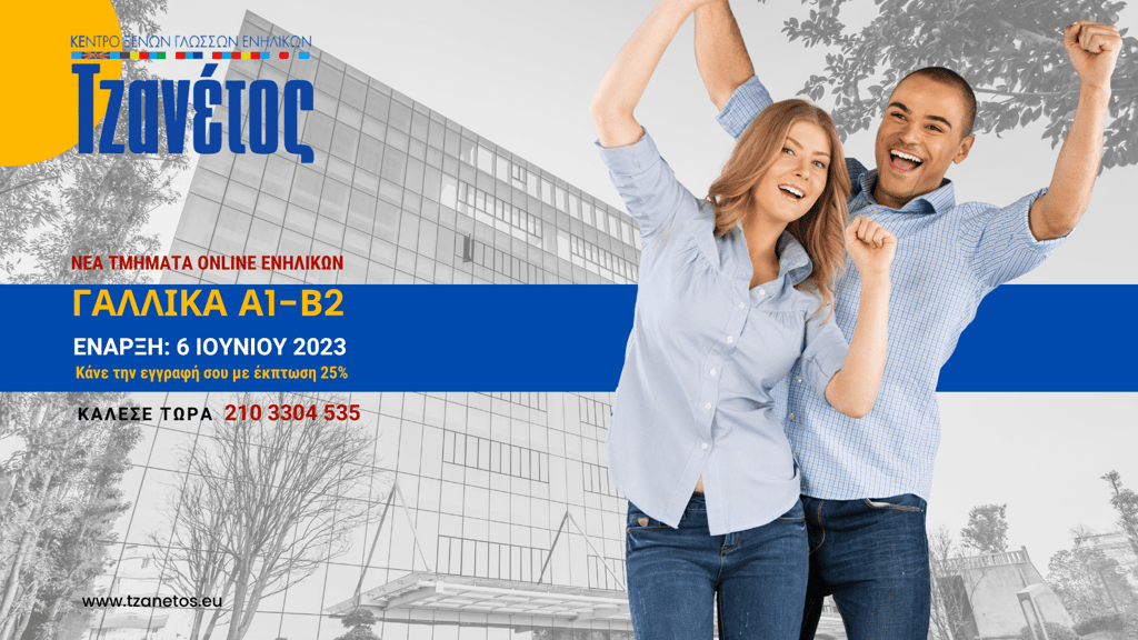 Επίσης να σας ενημερώσουμε ότι νέα τμήματα Γαλλικών για Ενήλικες θα λειτουργήσουν τον Ιούνιο και συγκεκριμένα στις 6 Ιουνίου 2023.